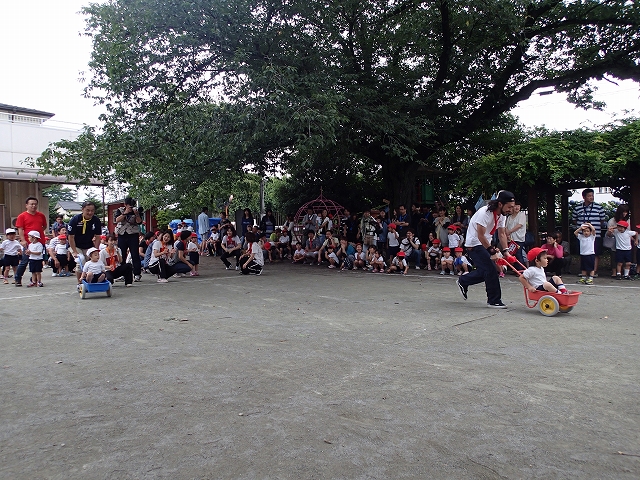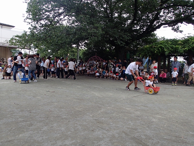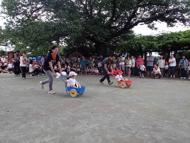 恒例の親子綱引きでは、お父さんお母さんにクラスの優勝の為に一生懸命頑張っていただきました(*^_^*)