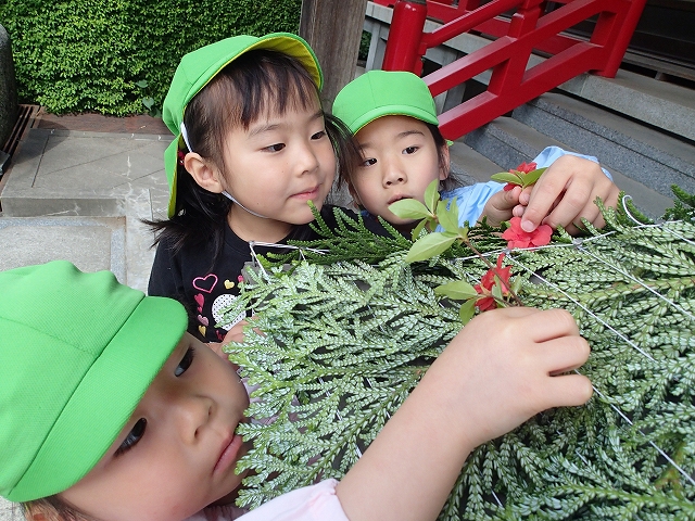 今年も朝から年長さんがお堂の花を飾るお手伝いをしてくれました!!